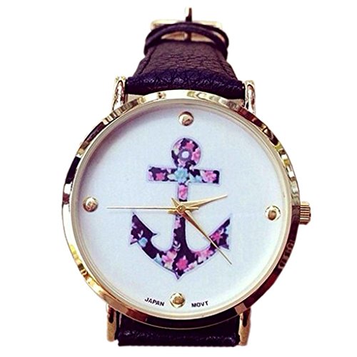 Minetom Ancre Montre à Quartz Analog Bracelet en Cuir Cadran motif Fleur Mode Femme et filles ( Noir ) est parmi les types de montre qui pourrait être ainsi un choix pour votre kid