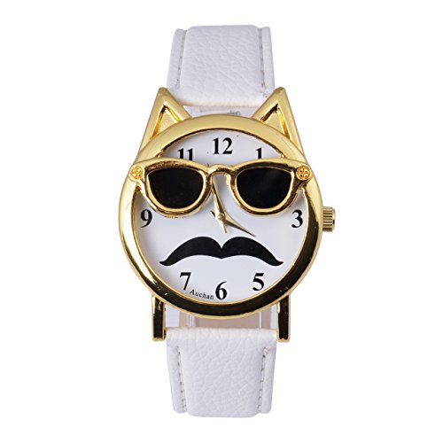 WANGSCANIS® [2016 NEW RELEASE] Lunettes Fashion Cat Visage Montre bracelet en cuir femme Montres Cool Cat Montres Filles Quartz blanc est parmi les sortes de montre qui pourrait être ainsi un option pour votre jeune