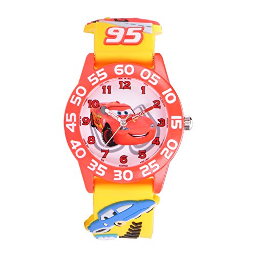 *Info boutique Disney - W001284 - Cars - Montre Garçon - Quartz Analogique - Cadran Blanc - Bracelet Plastique Jaune.
