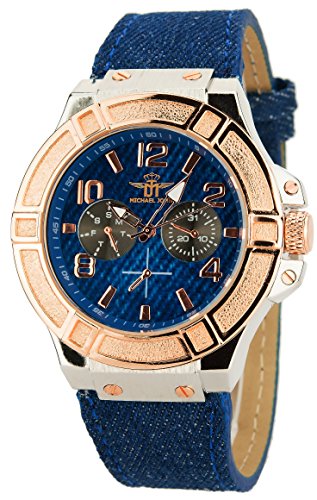 MICHAEL JOHN - Montre homme- Bleu- Or - Quartz - bracelet bleu jean est parmi les sortes de montre qui pourrait être ainsi un choix pour votre enfant